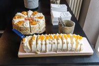 Im Theaterkeller: Getränke, Kaffee und Kuchen, eine Auswahl an kleinen warmen Speisen